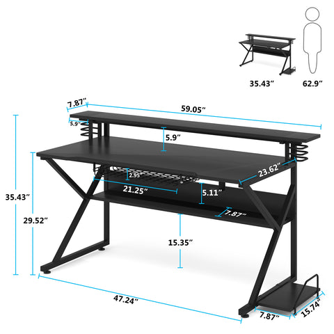 Gaming Desk, Computer Desk with Monitor Stand and Shelf