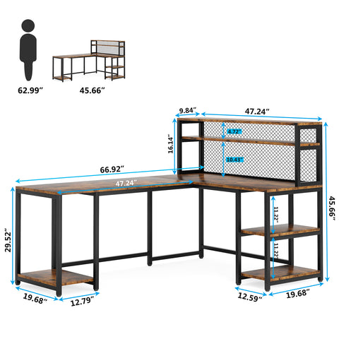 FREE INSTALLATION DESIGN – 67” L*47.24” W*45.66” H (overall ), this industrial-chic L shape desk provides vertical storage with various shelves. Offers ample storage for computer equipment, files, and other essentials.